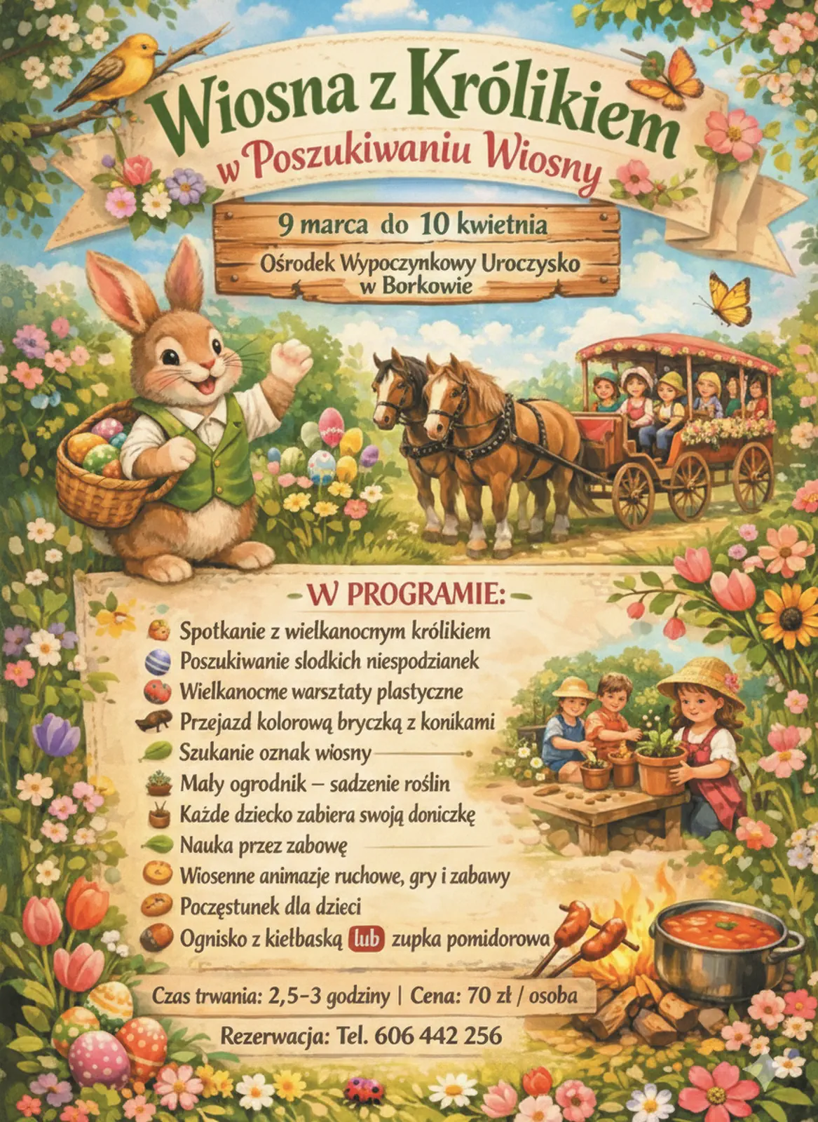 Pożegnaj zimę w najlepszym stylu! Zapraszamy na rodzinne tworzenie eko-marzanny, wspólny korowód nad wodę i wielkie ognisko z pieczeniem kiełbasek. Czekają gry terenowe dla najmłodszych i pierwsza wiosenna herbatka w otoczeniu budzącej się natury.